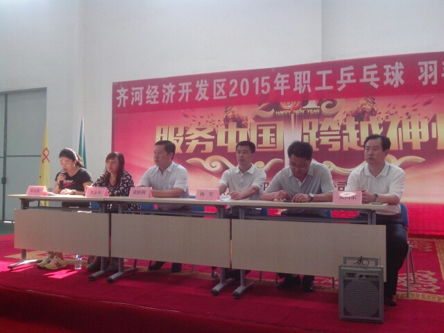 6月16日,齐河经济开发区2015年职工乒乓球、羽毛球比赛落下帷幕。经过激烈角逐,公司员工赵丽丽、王光英分别夺得女子羽毛球单打的亚军和季军,公司获得男子乒乓球团体赛的第四名。(图为比赛现场)
